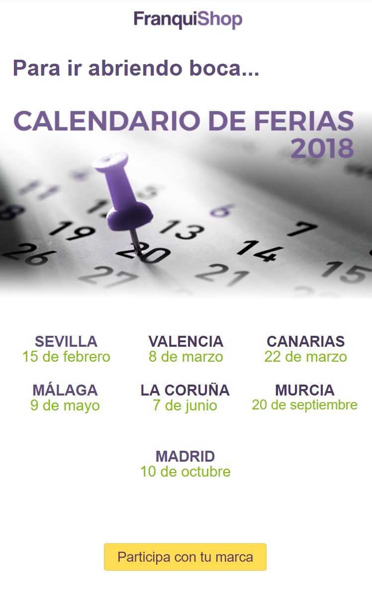 Buenos días. Este año Franquishop no celebra ninguna edición en Barcelona, pero sí tendrá lugar Bizfranquicias: http://www.bizbarcelona.com/es/bizfranquicias