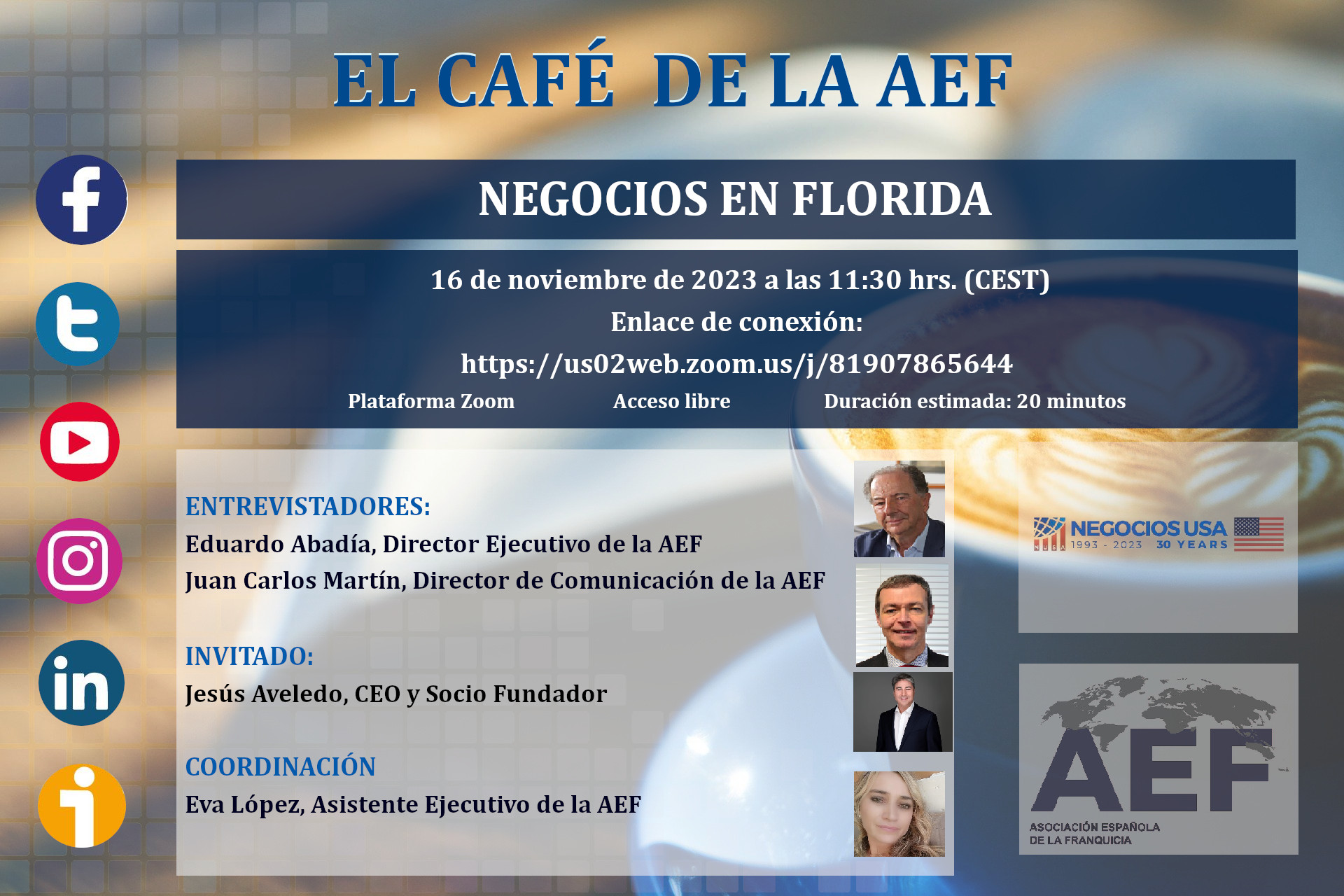 Café de la AEF-NEGOCIOS EN FLORIDA, Jesús Aveledo, Socio Fundador